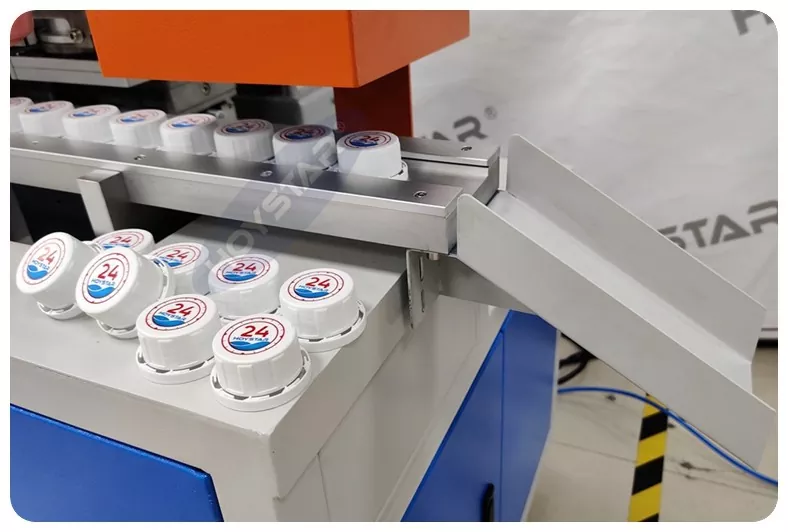ฟิกซ์เจอร์สามารถปรับแต่งตามขนาดขวดของลูกค้า และสามารถพิมพ์ฝาขวดได้ครั้งละสองฝา