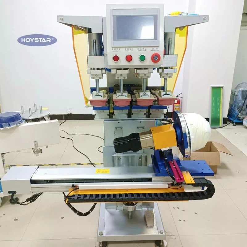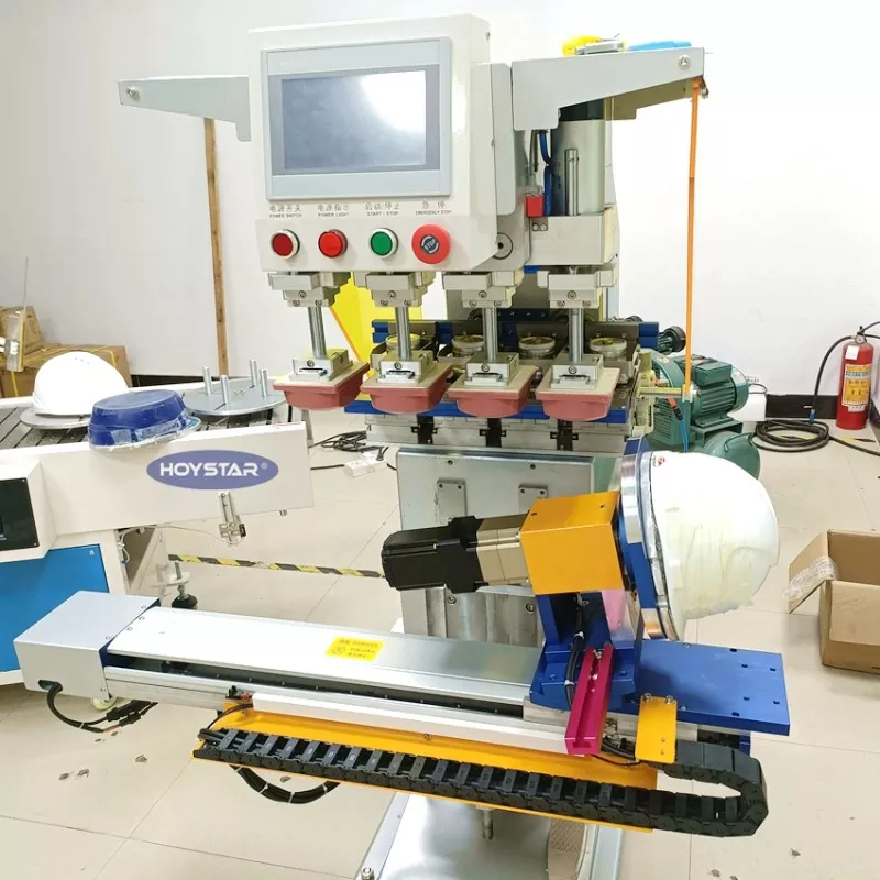 เลือกซื้อเครื่องพิมพ์แผ่นสี 4 สีสำหรับหมวกกันน็อคจาก Dongguan Hoystar Machinery Co., Ltd. ซึ่งเป็นหนึ่งในผู้ผลิตและซัพพลายเออร์ในประเทศจีน เครื่องพิมพ์แผ่นสี HOYSTAR 4 สีสำหรับหมวกกันน็อคนี้มาพร้อมกับแผงควบคุมหน้าจอสัมผัส PLC ใช้งานง่าย เครื่องนี้มีการควบคุมเซอร์โวมอเตอร์สำหรับการพิมพ์แบบหมุนอัตโนมัติ โดยมีตัวเลือกในการพิมพ์บนหมวกกันน็อค 1 ด้าน 2 ด้าน หรือ 4 ด้าน โต๊ะทำงานขับเคลื่อนไปทางซ้าย/ขวา เทวดาหมุน สามารถปรับความสูงของผลิตภัณฑ์ได้ หัวพิมพ์แต่ละหัวสามารถปรับได้อย่างอิสระและสามารถตั้งค่าแยกกันได้
