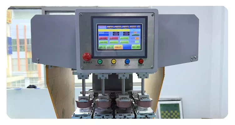 เครื่องพิมพ์แผ่น 4 สีสำหรับหมวกกันน็อคพร้อมแผงควบคุมแบบสัมผัสเพื่อควบคุม