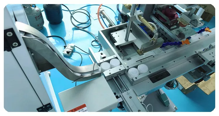 เครื่องพิมพ์แผ่นสีอัตโนมัติ 1 สีสำหรับฝาขวดพร้อมระบบป้อนกระดาษอัตโนมัติ