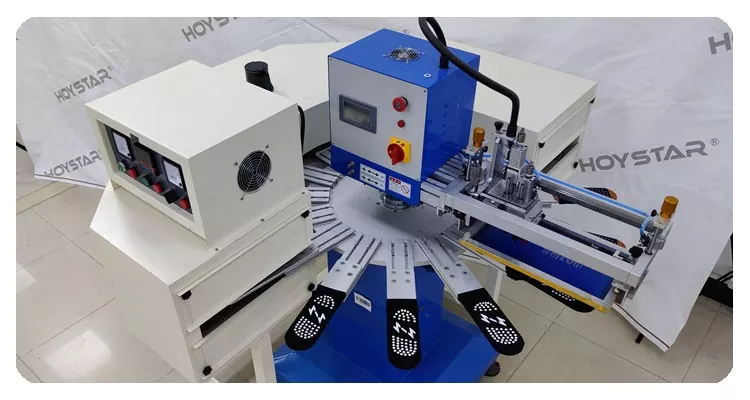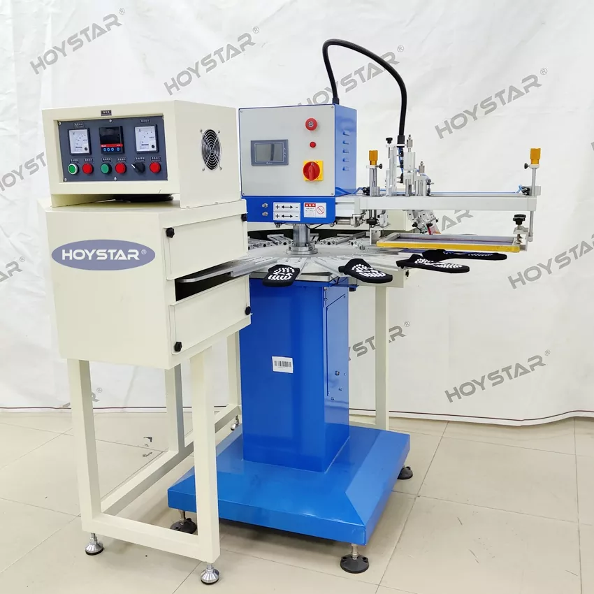 ในฐานะผู้ผลิตและผู้จัดจำหน่ายมืออาชีพ เครื่องพิมพ์สกรีนผ้าไหมถุงเท้าขนาดใหญ่อย่างรวดเร็วของ HOYSTAR นี้ได้รับการออกแบบสำหรับการใช้งานในอุตสาหกรรมถักสิ่งทอ ด้วยความเร็วสูงถึง 1200 ชิ้น/ชม. เหมาะสำหรับการพิมพ์ถุงเท้ากันลื่น ถุงเท้าเด็ก ถุงเท้าผู้ใหญ่ ถุงเท้าฟุตบอล ฯลฯ เมื่อติดตั้งโต๊ะทำงานแบบหมุนและเวิร์กสเตชัน 16 เครื่อง ทำให้สะดวกมากในการโหลดและขนถุงเท้า ควบคุมหน้าจอสัมผัส PLC ใช้งานง่ายมาก เครื่องที่ติดตั้งระบบอบแห้งสามารถทำให้ซิลิกอนและหมึกแห้งได้ดี