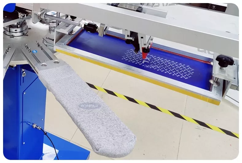 เครื่องพิมพ์หน้าจอกันลื่นสำหรับถุงเท้าของเราได้รับการออกแบบสำหรับถุงเท้ากันลื่นคุณภาพสูง เช่น ถุงเท้าเด็ก ถุงเท้าสัตว์เลี้ยง ถุงเท้าผู้ใหญ่ ถุงเท้าฟุตบอล ถุงเท้าจับยึด เหมาะสำหรับผู้ผลิตที่เชี่ยวชาญด้านถุงเท้ากีฬา การแพทย์ เด็ก และโยคะที่ซื้อเพื่อการพิมพ์