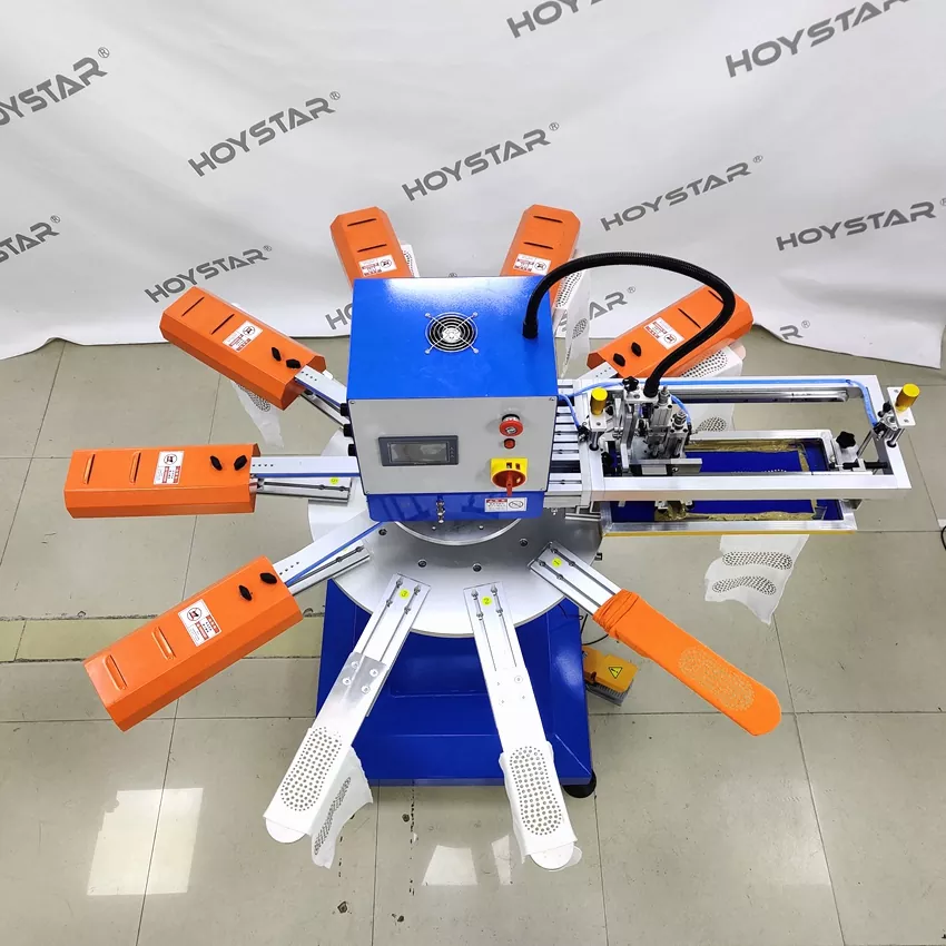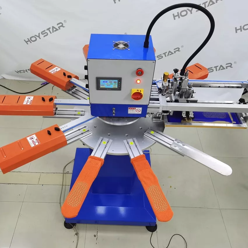 ในฐานะผู้ผลิตและซัพพลายเออร์ระดับมืออาชีพ เครื่องพิมพ์หน้าจอความเร็วสูง HOYSTAR สำหรับถุงเท้า ได้รับการออกแบบสำหรับการใช้งานในอุตสาหกรรมถักสิ่งทอ ด้วยความเร็วสูงถึง 1,000 ชิ้น/ชม. เหมาะสำหรับการพิมพ์ถุงเท้ากันลื่น ถุงเท้าเด็ก ถุงเท้าผู้ใหญ่ ถุงเท้าฟุตบอล ฯลฯ มาพร้อมกับโต๊ะทำงานแบบหมุน ทำให้สะดวกมากในการโหลดและขนถุงเท้า ควบคุมหน้าจอสัมผัส PLC ใช้งานง่ายมาก เครื่องที่ติดตั้งระบบอบแห้งสามารถทำให้ซิลิกอนและหมึกแห้งได้ดี