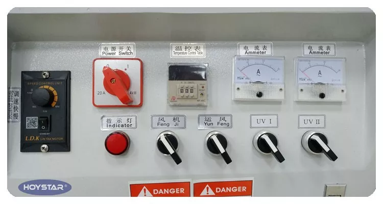 สายพานลำเลียงเครื่องบ่มยูวีเครื่องเป่าถูกควบคุมโดยมอเตอร์ไฟฟ้า และสามารถปรับความเร็วได้ขึ้นอยู่กับความเร็วในการผลิตที่ต้องการเพื่อให้ตรงกับความต้องการในการอบแห้งที่แตกต่างกัน